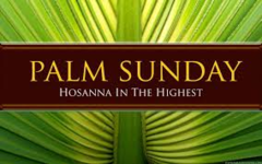 The Sunday before Easter at which Jesus’ triumphal entry into Jerusalem (Mt 21:1-11, Mk 11:1-11a, Lk 19:29-40) and Jesus’ Passion on the cross (Mt 26:36-27:66, Mk 14:32-15:47, Lk 22:39-23:56) are recalled. It is also known as the Sunday of the Passion. Palm Sunday is the first day of Holy Week. Red is the liturgical color for the day.