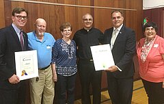 Parishioner, Ed Stahley, was the proud recipient of the 1000th lunch served at the Young at Heart Senior Meeting in October. The seniors were honored by Oyster Bay Town Supervisor, Joseph Saladino and Nassau Legislator James D. Kennedy who presented citations to Rev. Walter Hillebrand, Rector of Grace Church, and Mrs. Ellen Ritter and Mrs. Pat Adams, co-organizers of the Young at Heart Group. Both Supervisor Saladino and Legislator Kennedy spoke about the importance of this group and how it promotes a strong and caring sense of community. What a wonderful day at Grace. Many thanks to all the volunteers who make this program possible. Young at Heart welcomes seniors from the greater Massapequa community to join in fellowship the first Wednesday of every month for a no cost lunch and a short program or entertainment.