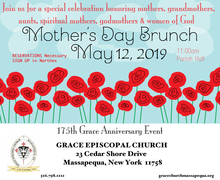 Join us for a wonderful Mother's Day Brunch on Sunday, May 12th at 11:00 am in the Parish Hall.